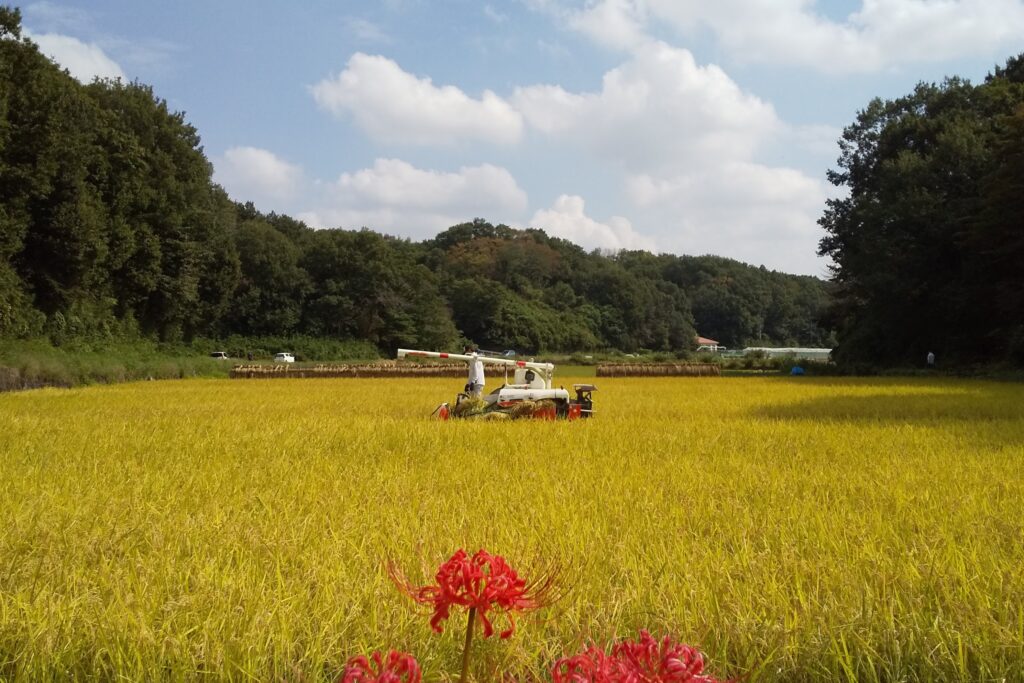 10月になると稲は黄金色に色づき、里山では稲刈りの風景が広がります。